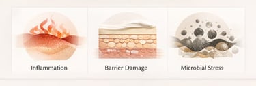 Every day, the skin is exposed to ongoing pressures from aging, sun exposure, pollution, temperature swings, dry indoor air, friction, shaving, overwashing, and constant microbial presence.